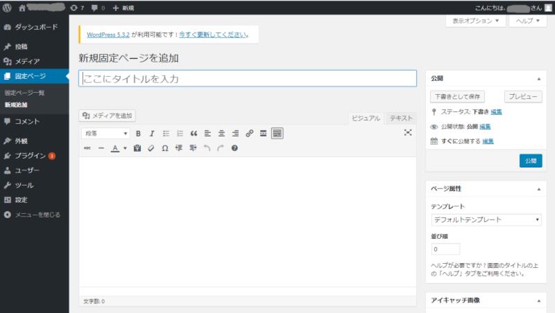 固定ページの新規追加をクリックしますと、先ほどのClassic Editorの画面になります。